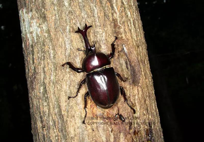 独角仙的成虫只有1~3个月的寿命,最容易看到成虫的时节是6~8月份的盛夏。虽然看起来威武健壮,它们其实是不折不扣的素食主义者——幼虫吃腐殖质,成虫嗜好甜的树汁。夜间在树汁丰富的柳树、栎树、核桃树等树上都可能看到独角仙出来觅食的身影。