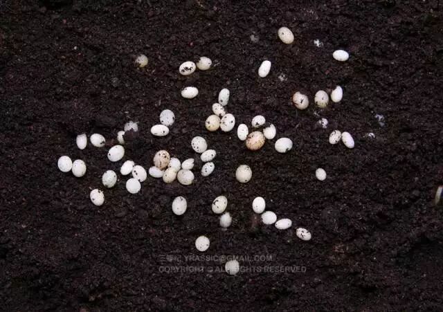 独角仙的卵,雌虫把它们埋在土里。左右滑动可看独角仙的幼虫。