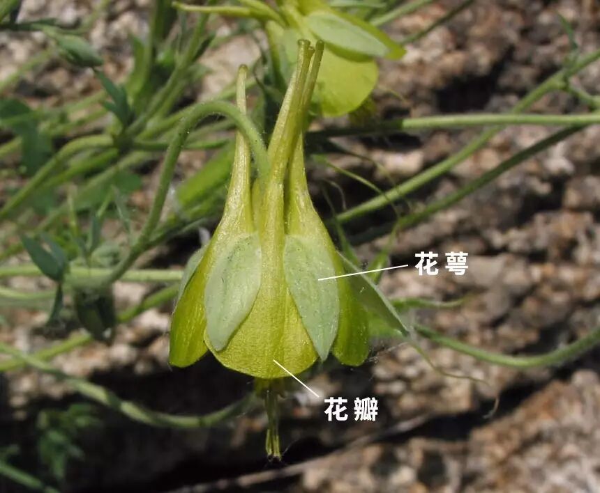 华北耧斗菜通常开紫色花,多数时候可以和耧斗菜区分开。但它也有开黄花的变种,花萼花瓣都是淡黄色的。图片:沙漠豪猪