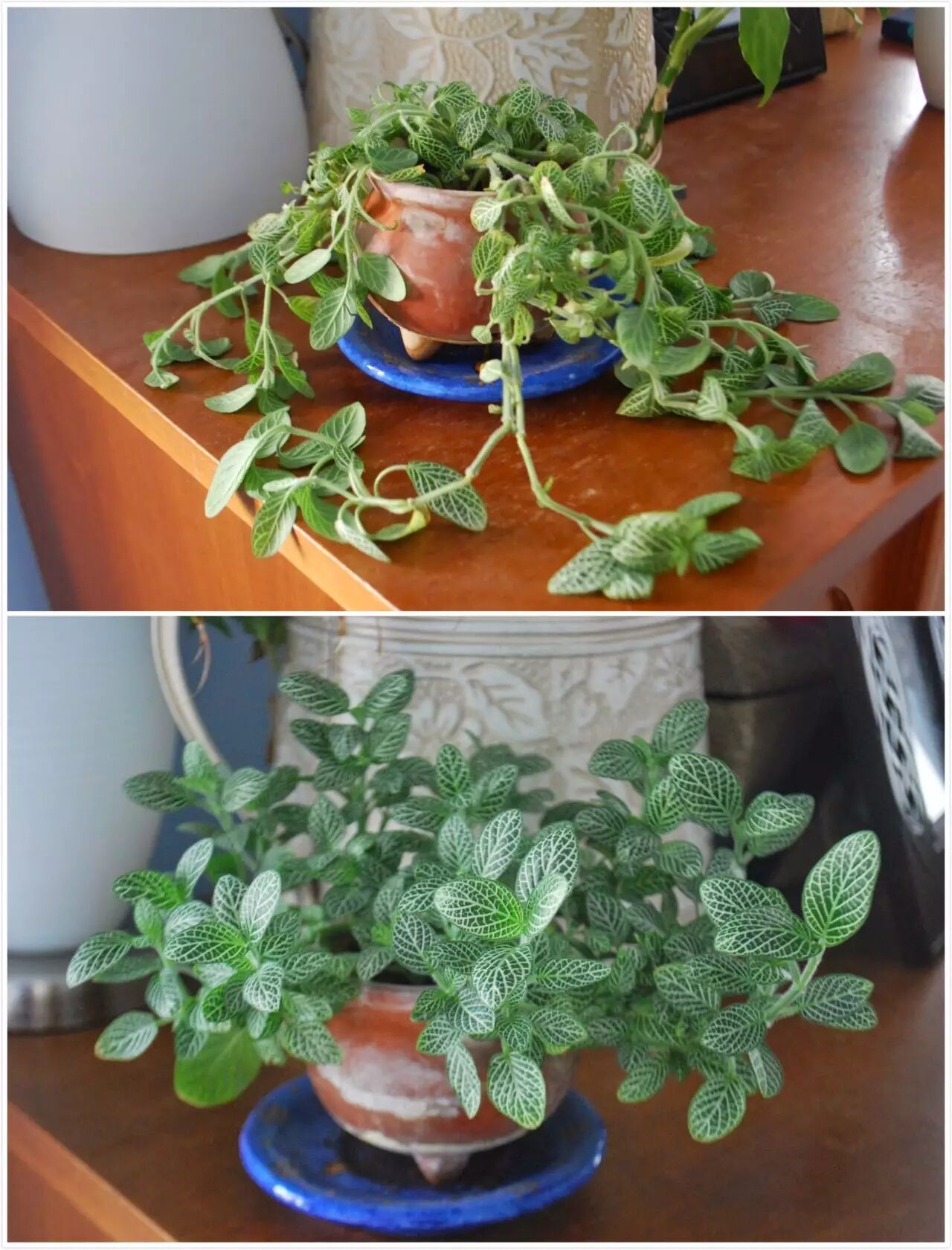 不过,虽然休眠期也可以,扦插最好还在温暖的季节进行,剪下一截具有三四个节的枝条插在基质里,过半个月就会生根;扦插的枝条在根系生长出来前需要更高的空气湿度,要经常喷水。分株繁殖更简单,网纹草匍匐生长的茎上经常会长出来不定根,把这样的匍匐茎剪下来直接种盆里就可以了。