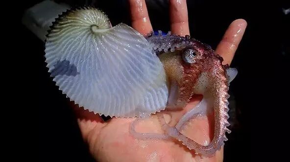 带壳的扁船蛸。图片:monstersproshop.com