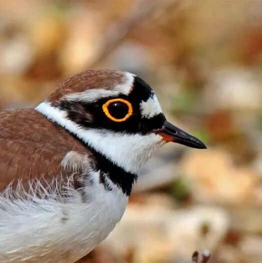 因为黄色的眼眶,金眶鸻是一种很好辨识的鸟。除了眼眶,其身体的其他配色也十分讲究:站立时背部呈沙褐色,非常有利于使自己和周围的环境融为一体;颈部具有黑色与白色的双层项圈,眼先(lores)与额头也是黑白双色的横纹;再加上白白的肚皮——活像一个戴着黄色眼镜的小丑……