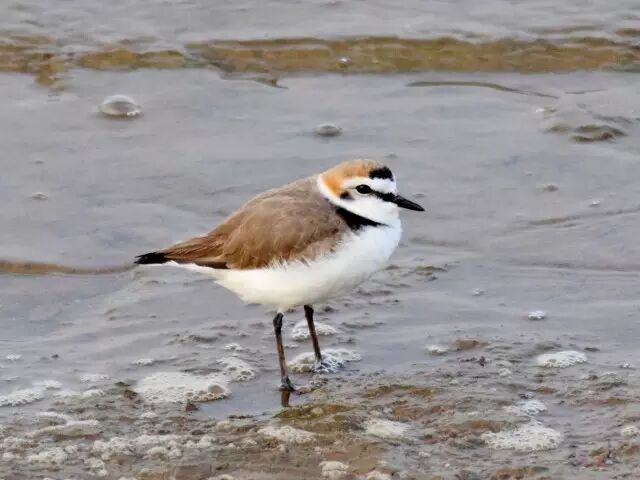 这只雄性个体的特征更加明显,头顶具有明显的黑色斑块,枕后部呈棕色。(大家来找茬:环颈鸻的黑色领圈并不连贯,可为什么被称作环颈鸻呢?)图片:阙品甲