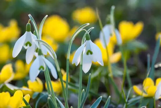 洁白的雪滴兰和鲜艳的冬菟葵,是花园中早春绽放的第一批花朵。图片:ShutterStock