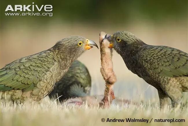 一小群啄羊鹦鹉,正在分享一只野兔。图片来源见水印