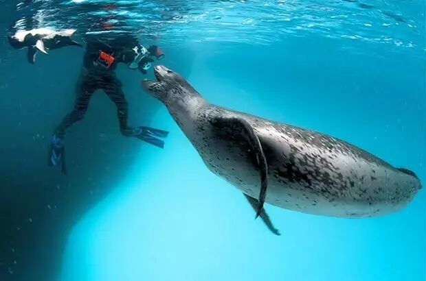 这就是那张著名的“你好这是我的QQ”,图中海豹把自己抓到的企鹅送给了摄影师。