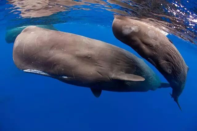 比外形更难理解的,是抹香鲸的生活方式。深吸一口气,下潜两千多米深,再浮出水面已经是两个小时以后。这是哺乳动物里自由潜水的的第二好成绩,仅次于柯氏喙鲸(Ziphius cavirostris)。当然,抹香鲸也许会潜得更深,只是人类对它的了解太少。