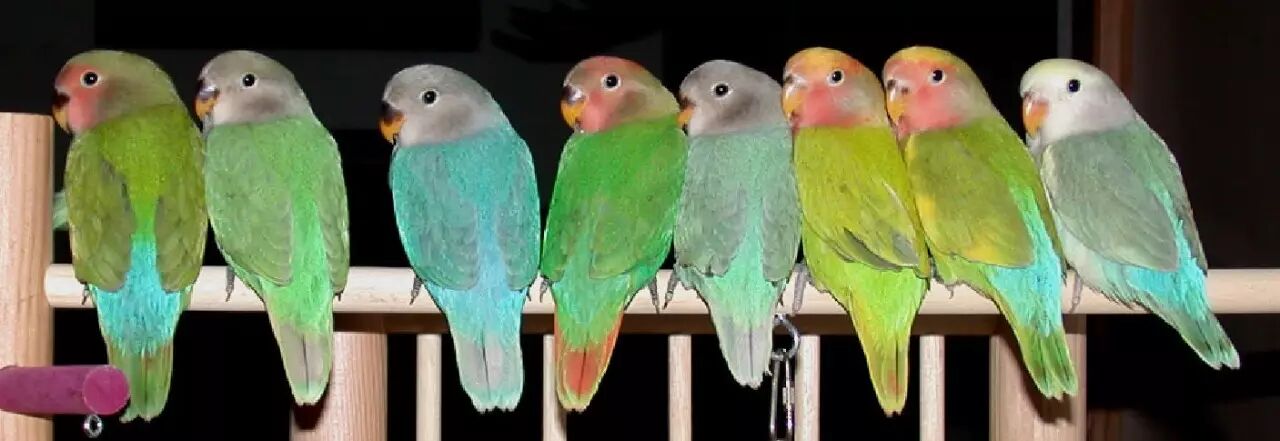 野生的桃脸情侣鹦鹉是群居鸟类,一个群体少则五六只多则上百只,不过人工饲养时并不需要特地买一大群来养,养一对就行。原因嘛,一是鸟买多了出现性格不合打架的可能性大;二是它们很容易繁殖,今年养一对,明年可能就会变成一大家子。