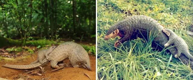 小穿山甲出生后会抱在母兽的背上行动。图片来源:onca.org.uk/pinimg.com