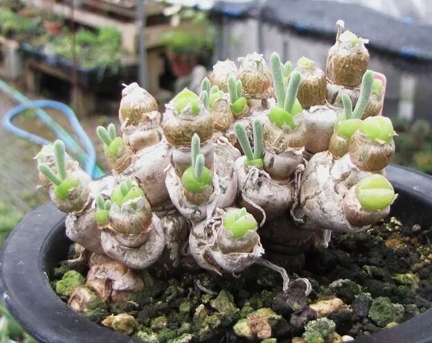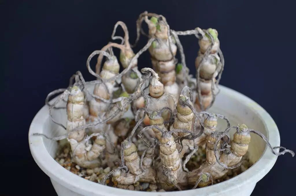 上了年纪的兔子,会形成壮观的群生老桩。尤其在休眠期,这段时间虽然不萌,但却能触发块根爱好者的审美高潮:斑驳的外皮,奇异的造型,给人一种肃寂的盆景之美。目前碧光环的繁殖,主要靠籽播和茎段扦插,由于扦插成活率低,籽播带大过程缓慢,所以老桩可遇不可求,价格令人咋舌。