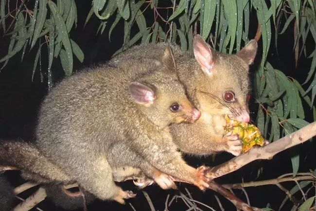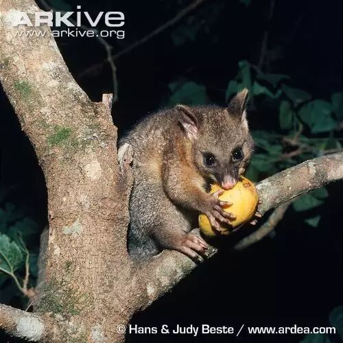 虽然主要适应森林生境,帚尾袋貂对其他环境也有着惊人的适应性,在半干旱地区和人类聚居区都有分布。它们食性多样,对于昆虫、鸟蛋、幼鸟、小型哺乳类、水果蔬菜、花、种子等等来者不拒,是澳大利亚城市里最常见的有袋类动物。说到这里,北美的朋友们眼前应该已经浮现出了自家的垃圾桶或者厨房被浣熊洗劫后的惨象。没错,这项扰民的工作在澳大利亚由普通帚尾袋貂负责执行。