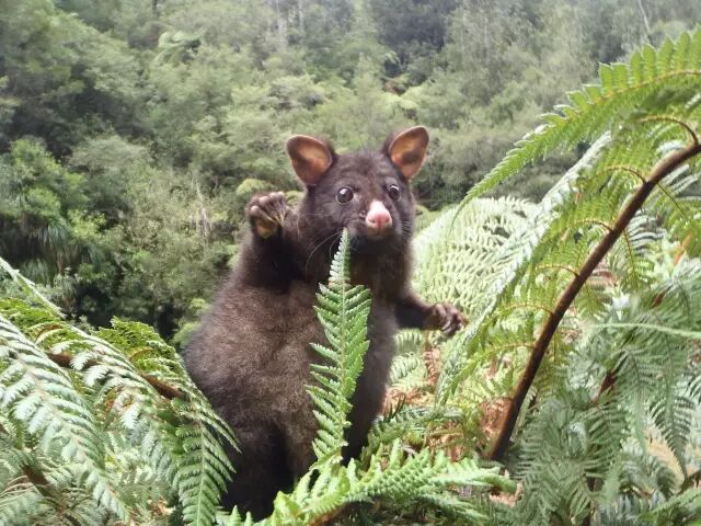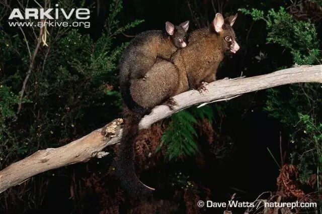 跟美洲装死尸吓人的负鼠不同,袋貂所在的双门齿目是澳洲有袋类专职卖萌的那一大群——考拉、袋熊、各种袋鼠都属于这个类群。至于图片中这只萌物,是袋貂科帚尾袋貂属的普通帚尾袋貂(Common bushtail possum, Trichosurus vulpecula)。也有人管它叫刷尾负鼠,我想大概这是通假字一例。