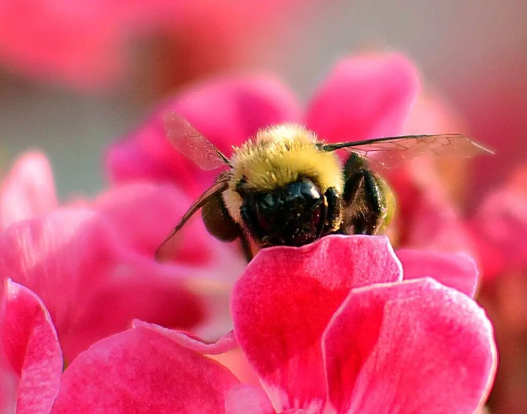 花丛中传粉的蜜蜂,帮助植物繁衍生息。图片:M Dreibelbis/flickr
