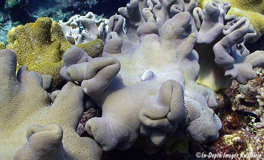 玉兔螺及Sarcophyton软珊瑚。图片:Nhobgood