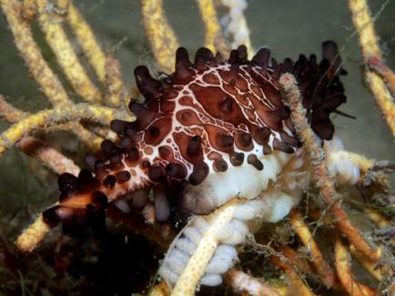虽然玉兔螺食性较为专一,不过一家之中总得有那么几个胃口好不挑食的。和玉兔螺比起来,袖扣海兔螺(Cyphoma gihbosum)就什么都不挑,它们的食谱包括了八放珊瑚亚纲的许多种类,而且吃相也不怎么雅观,所经过的地方常常是一片狼藉。