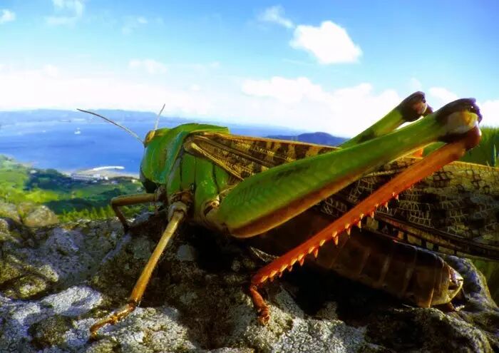 这几张照片有点年头了,所以分辨率比较一般,画质看起来也一般。但注意这个视角,这是真正的昆虫视角,是另一只昆虫贴近被摄昆虫的视角。等等!贴近?常拍微距的朋友应该感觉到事情有点异常了。这个景深,是怎么一回事?
