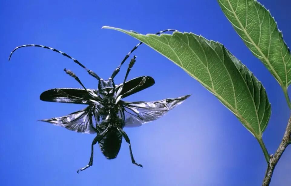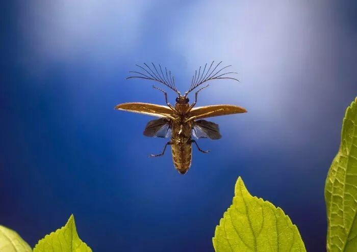 当然,虫子不止会在地上跑、树上爬,它们还会飞。栗林大师也十分擅长拍摄飞虫,尤其擅长抓拍昆虫在空中的体态,照片的精彩程度,远胜于上面这一批: