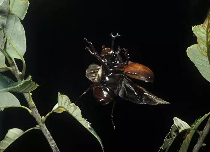 另外,栗林慧拍的那些飞虫,技术也不简单。昆虫小,飞得快,动起来很不好对焦。要拍动态,还得要光照好才拍得清楚。于是,栗林慧在很早,就发明了一套触发式的闪光系统,一旦昆虫进入镜头对焦的区域内,闪光灯和快门就会一起运作,于是就能拍到那样精彩的照片: