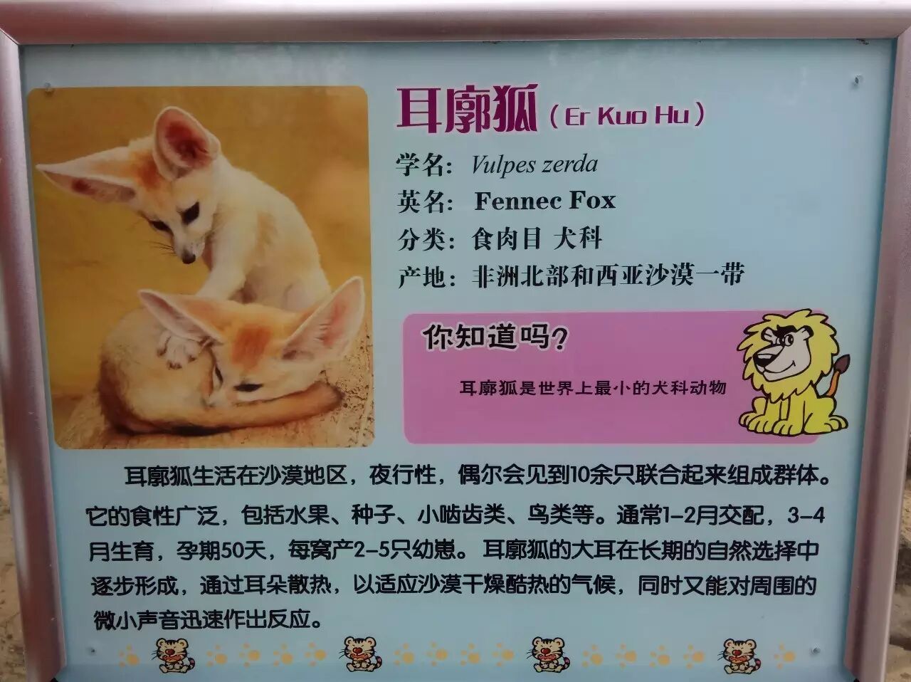 而且要感谢谭先生对科学普及的贡献,因为这部工具书是在动物园系统普遍使用的,所以上世纪九十年代,国内动物园凡是饲养过这种狐狸的,都使用【耳郭】狐这一名称。在我小时候,去北京动物园夜行动物馆参观,我记得清清楚楚,说明牌上的名称就是【耳郭】狐。又参阅《北京动物园志》,记载【耳郭】狐的首展时间为1989年11月12日,1990年11月22日“【耳郭】狐一胎产4仔,为首次繁殖成功。”2002年中国林业出版社出版的这部志书还在叫【耳郭】狐。那“耳廓狐”是怎么来的呢?