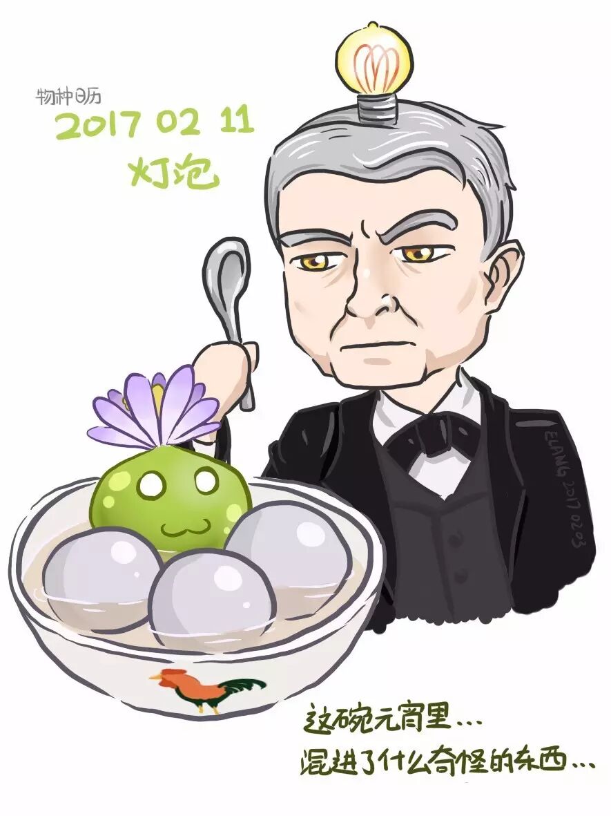 因为,今天又是元宵节,又是爱迪生的生日呀。绘图:翼狼Elang