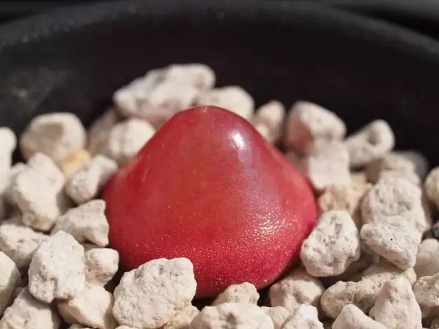 你所看到的灯泡部位,不是茎,更不是果实,而是变态的叶。灯泡植株几乎无茎,叶片高度肉质化,上窄下宽,形成一个先端钝圆,漂亮柔和的圆锥形,侧面观察就像是一座小山包。灯泡淡绿色的叶片在阳光照耀下显得透亮有光泽,上面还可见水晶般的裂痕纹理。在大温差、强日照的条件下,清新的绿色叶片会换上粉嫩的红色外衣,这时候的灯泡最萌,像一颗活着的红宝石,非常惹人喜爱。