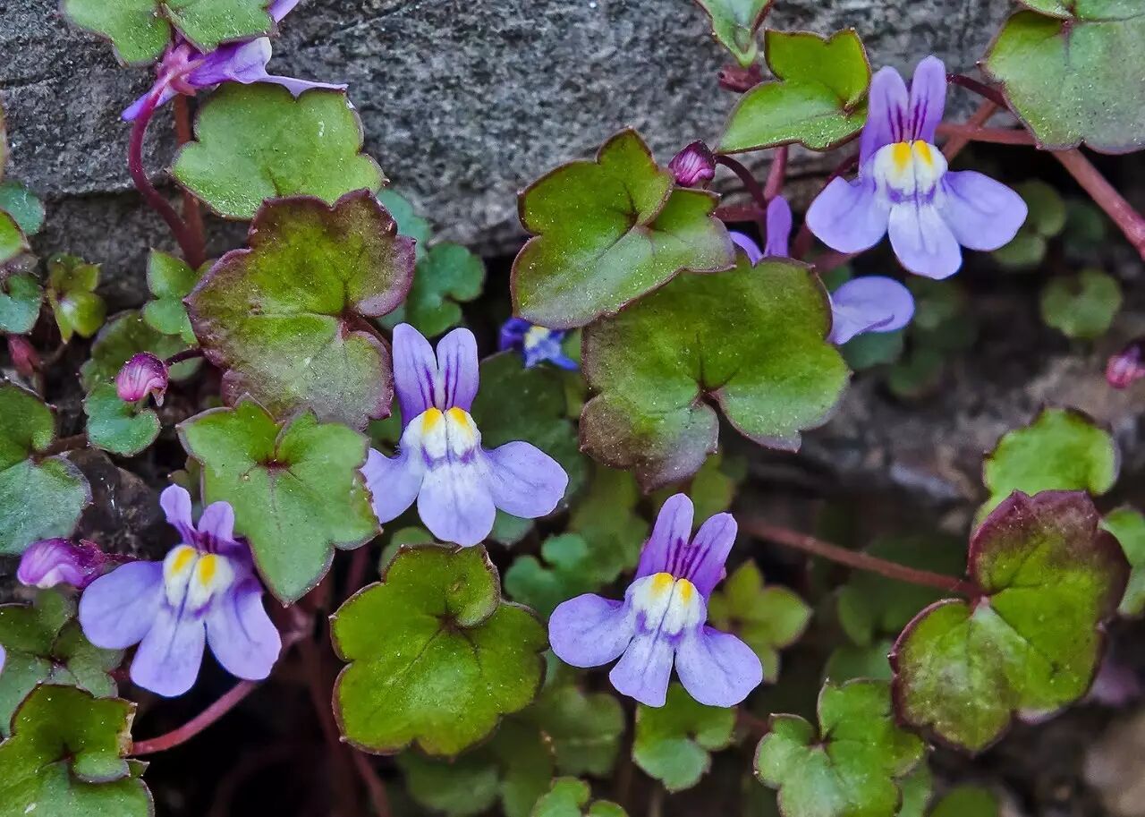 蔓柳穿鱼 Cymbalaria muralis 花冠上面的两个裂片朝天竖起,也像兔子。