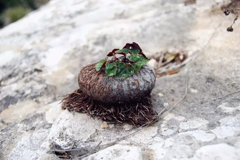 仙客来的块茎开始萌发小叶,和前一张图相比,可以见到仙客来块茎的鲜明特点:根从下方长出。图片来源见水印