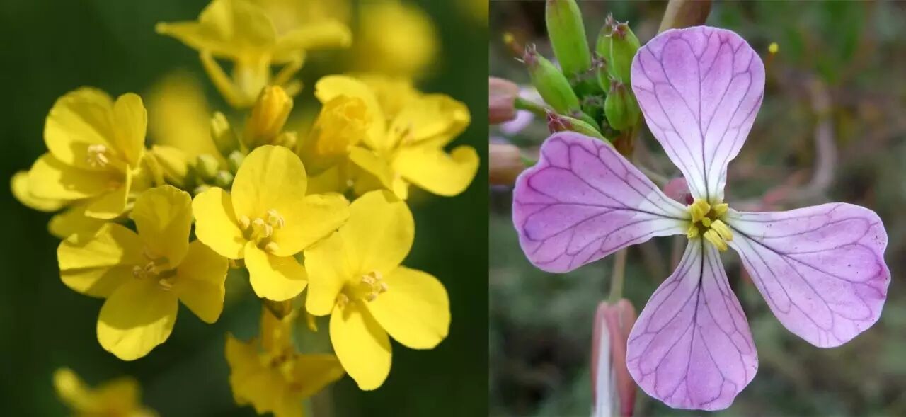 十字花科芜菁和胡萝卜,明显的四个花瓣。图片:wikimedia.org / americansouthwest.net