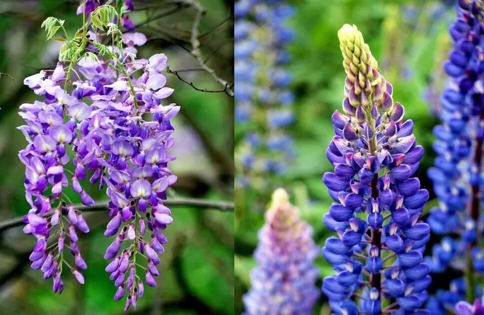 羽扇豆(左)和紫藤(右)均为豆科植物,小花聚生在花序轴上。图片:alicdn.com / akamaized.net