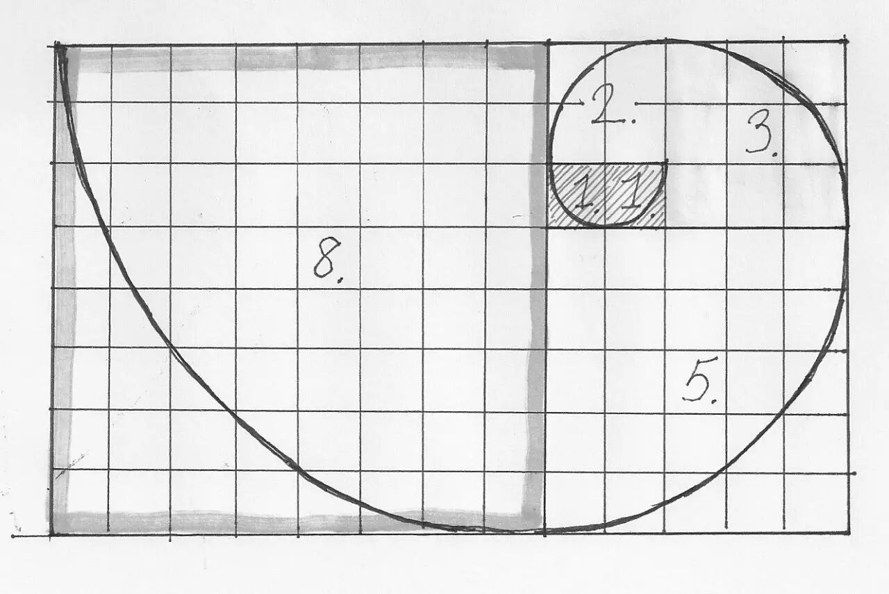 我们先来了解一下什么是斐波那契数列,Fn+1=Fn+Fn-1,这个数列中的每个数字都是前两项数之和,如果是以1,1开头的自然数数列,1,1,2,3,5,8,13,21,34,55,89……这些数字被称为斐波那契数。同时,这个数列中还暗含着黄金比例,如果用数列中的每一个数字去除它后面的数字,数字越大,结果就越趋近于1.618,也就是我们平常所说的黄金比例。