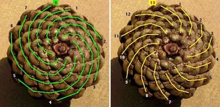 松塔的螺线:左旋13,右旋8。图片:pinterest.com