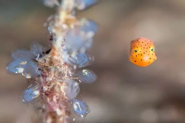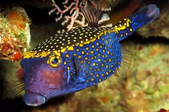 粒突箱鲀[tún]就是这样一种外表浮夸的小鱼,它的杀手锏是卖得一脸无敌好萌,使发现它的天敌无不内心融化而后心生怜惜(雾)。