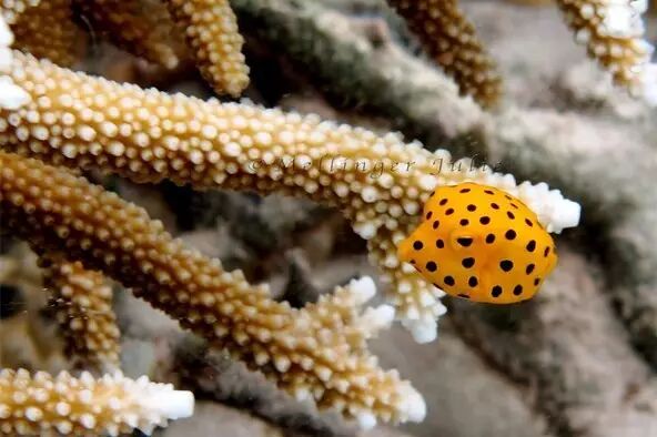 粒突箱鲀迷幻鲜艳的色彩造型像极了日本艺术家草间弥生的波点艺术。极简的超现实抽象表现力,无穷的圆点和艳丽的色彩重叠成一片海洋,在绚丽多彩的珊瑚丛中,混淆了真实空间的存在,只有阵阵眩晕和不知寄身何处的迷惑感,活生生能把天敌看傻的节奏。