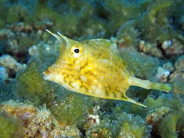 粒突箱鲀(Ostracion cubicus),鲀形目箱鲀科箱鲀属鱼类,英文俗名“yellow boxfish”,小黄盒子般的外形恰如其名,在水族市场又俗称“木瓜鱼”。粒突箱鲀是一种活跃于热带、亚热带的海水鱼,主要分布于印度洋、太平洋以及红海的潟[xì]湖或珊瑚礁区域。