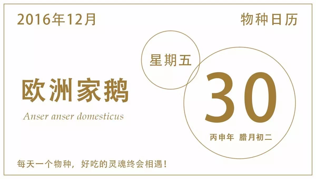 欧洲餐桌上常见的鹅也就是欧洲家鹅(Anser anser domesticus),普遍被认为是从一种叫灰雁(Anser anser)的野雁驯化而来的。而我们更熟悉的中国家鹅的祖先则是和灰雁同属的鸿雁(Anser cygnoides)。两种家鹅最常见的是白色型,当然也有保留了和野雁相似的原色型家鹅。