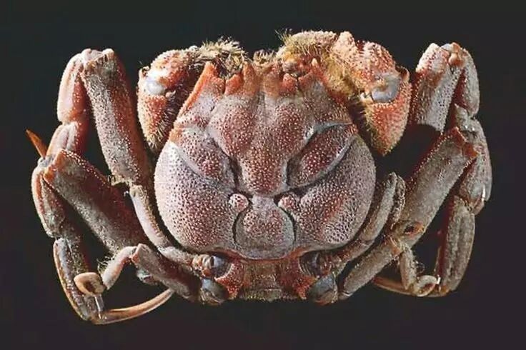 这种螃蟹在我国沿海也有分布,不过人们觉得它背甲上的纹路像戏台上的关公脸谱,于是叫它关公蟹。虽然名字威武霸气,但是平家蟹在海里却是个谨小慎微的家伙,它只有用来行走的两对步足,另外两对短小的步足的作用是抓住贝壳、珊瑚等杂物背在背上当做掩体。