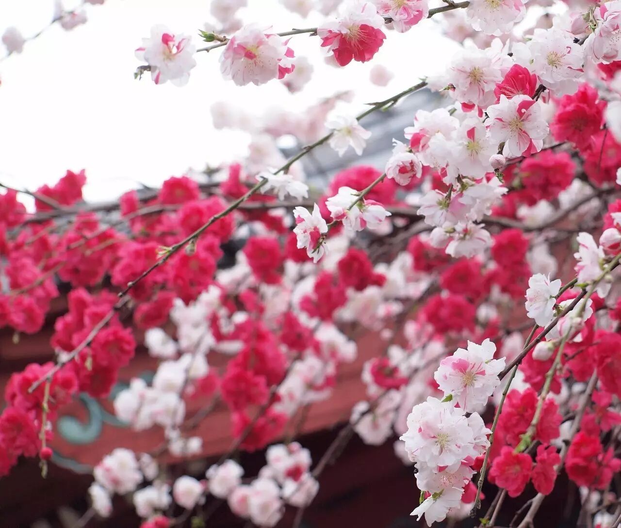 桃花、梅花、樱花等观赏植物中经常会出现芽变的现象,如果是一棵树上的花同时出现红白两种颜色就叫做源平色(源平咲き)。