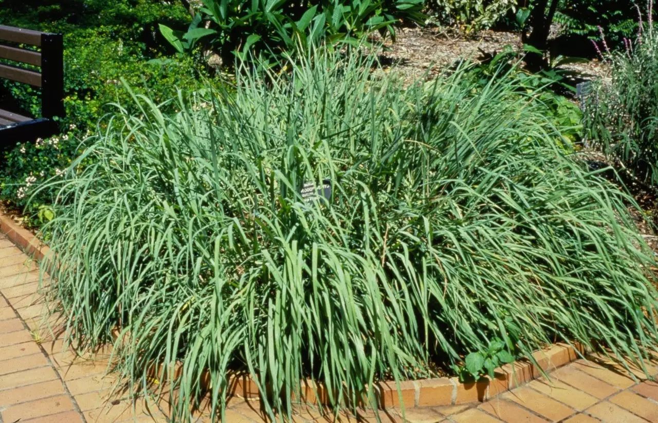 柠檬草是多年生草本植物,高的植株可以达到2m高度。植株丛生,茎绿色;叶片抱茎生长,多为绿色(颜色深浅因栽培环境而异),长度可达1m,宽约1.5~3cm。原产南亚的柠檬草喜欢光照充足且温暖的环境,比较耐旱。