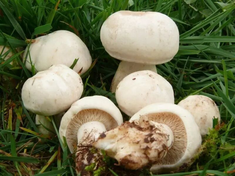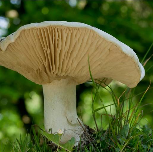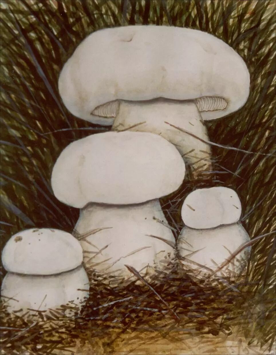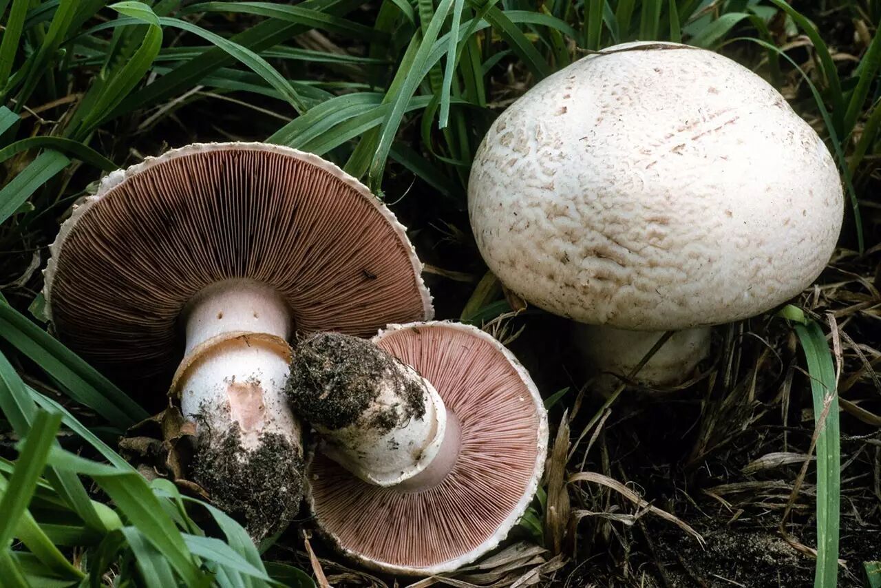 跟口蘑相比,双孢蘑菇有菌环,而且菌褶是黑褐色的。图片:MykoWeb