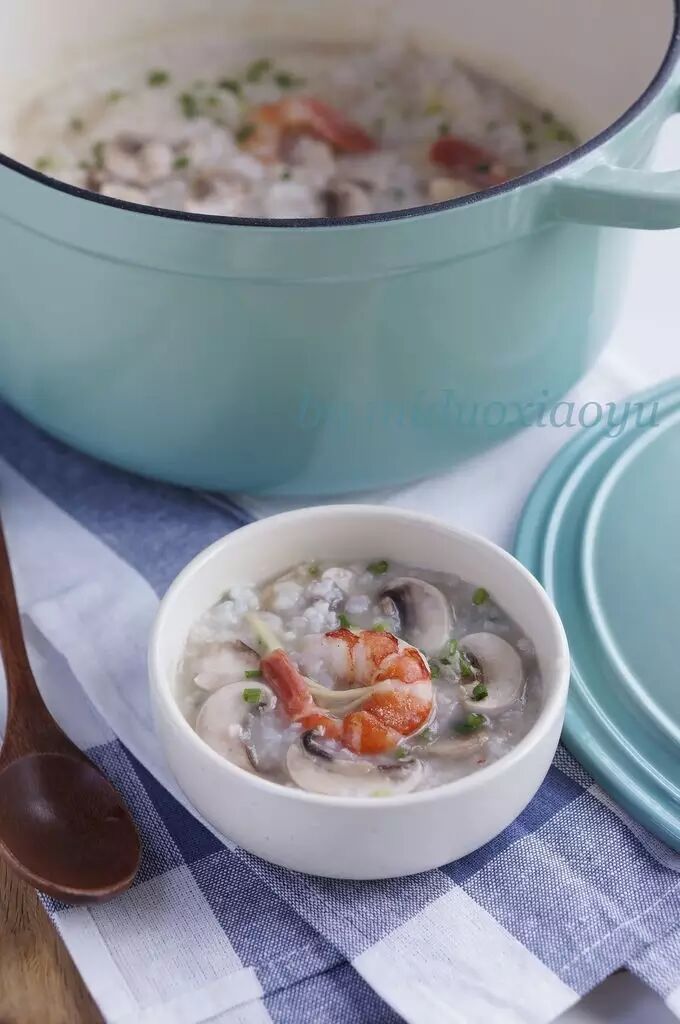 鲜虾“口蘑”粥,丰富的游离氨基酸带来美味。图片来自豆果美食