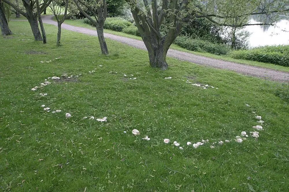香杏丽蘑的蘑菇圈。图片:British Isles fungi and some slime moulds