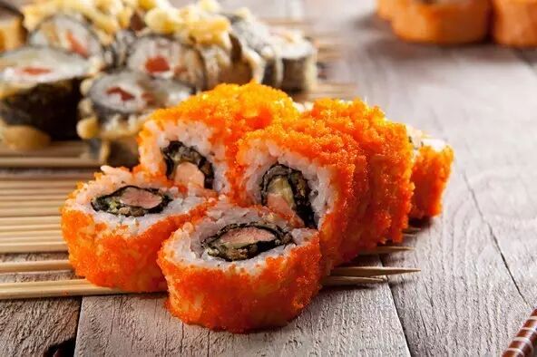 飞鱼籽卷寿司。图片:123rf.com.cn正版图片
