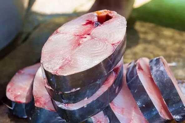 粉嫩厚实的马鲛鱼肉。123rf.com.cn正版图片