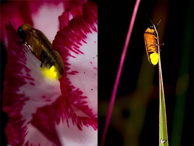 来,近距离看看这只发光的小可爱。水生的黄缘萤(左)和陆生的边褐端黑萤(右)。图片来源:守望萤火
