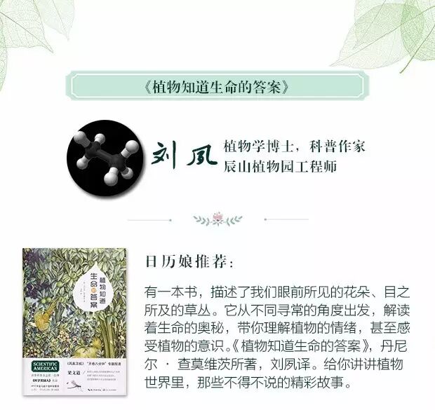 丹尼尔·查莫维兹通过这本书,深入浅出地介绍植物的一些特性及与之相关的研究历史,用拟人的手法描述植物的生活、植物的日常,引人深思。尝试着理解一下植物的情绪,还可以遁入植物的世界呢。