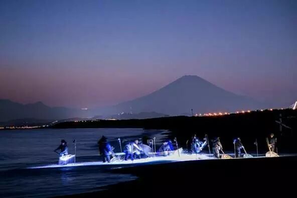 日本捕捞魩仔鱼已有超过百年的历史,每到幼鱼的洄游季节,总能看到湘南沿岸捕捞魩仔鱼的盛景,这类小鱼很容易被灯光吸引,渔民们也正是利用了这一特点,毫不费力地将它们一网打尽。