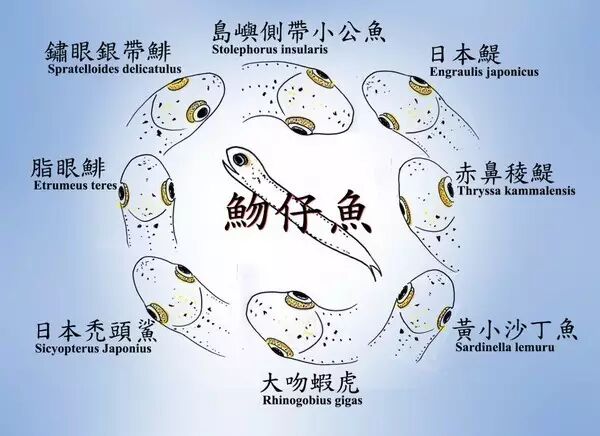 魩[mò]仔鱼的体长一般不超过40毫米,鱼身几乎完全透明,体表带有深色斑点或条纹,它们多是刚刚孵化不到一个月的幼鱼。魩仔鱼的主体通常是鳀科和鲱科鱼的幼鱼,但根据捕获海域不同构成也会有所变化。