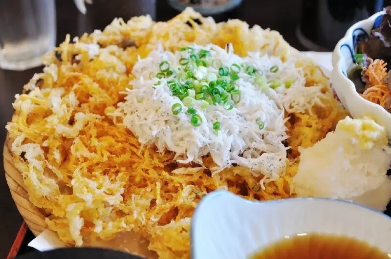 在镰仓和江之岛随处都能看到吃シラス(魩仔鱼)的专门店,店里的料理都以小银鱼为主料,其中最具代表性的料理就是生しらす丼(生小银鱼盖饭),香糯的米饭上铺上一层晶莹剔透的新鲜小银鱼,撒上青葱和海苔丝,淋上些许酱油,再打上一枚新鲜的鸡蛋......