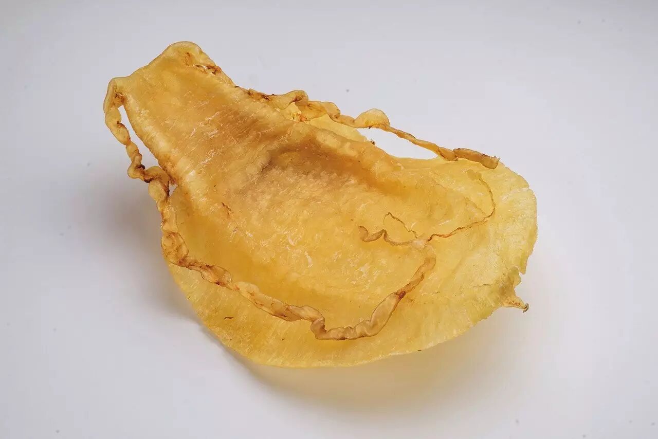 不幸的是,随着大黄鱼资源的极度匮乏,现在市场上的黄花胶恐怕都是用其他石首鱼的鳔来假冒的了,其实也算不上假冒,只是在市场上售卖的各种鱼胶很多都叫黄花胶罢了。
