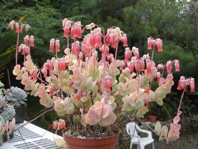 在我国南方很常见的一种不死鸟,有着类似扇贝的叶片,叶缘波浪状,出状态是迷人的粉嫩颜色,花如同迷你的钟罩一样羞答答下垂,可能这就是玉吊钟名字的由来吧。